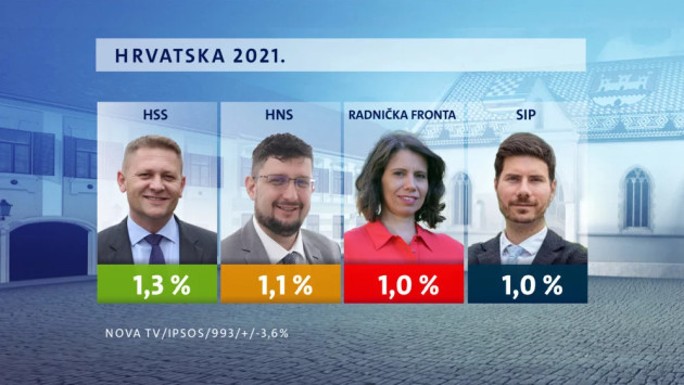 Slijedi Centar s 1,6, HSS je mjesec završio s potporom od 1,3 posto, a HNS s 1,1. Radnička fronta ima 1 posto baš kao i Stranka Ivana Pernara.