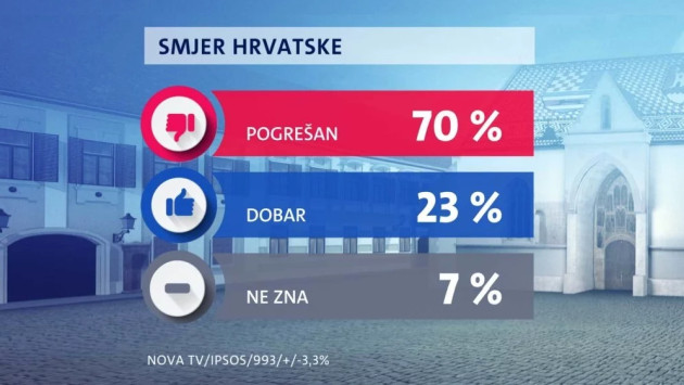 Sada 70 posto ispitanika misli da zemlja ide u lošem pravcu, a da ide u dobrom, misli tek 23 posto dok ne zna njih 7 posto.