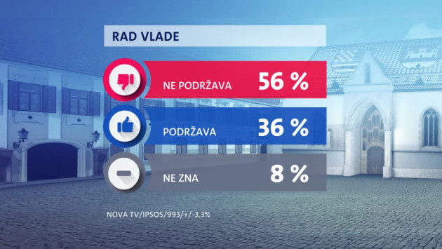 Isto tako većina građana ne odobrava rad Vlade, njih 56 posto, a odobrava ga samo 36 posto, dok ne zna njih 8 posto.