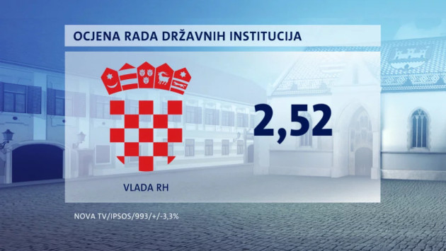 Vlada je ocijenjena s 2,52, također "trojkom" i tu je vidljiv porast. Raste i potpora Hrvatskom saboru, sada dobivaju 2,15 ili "dvojku".