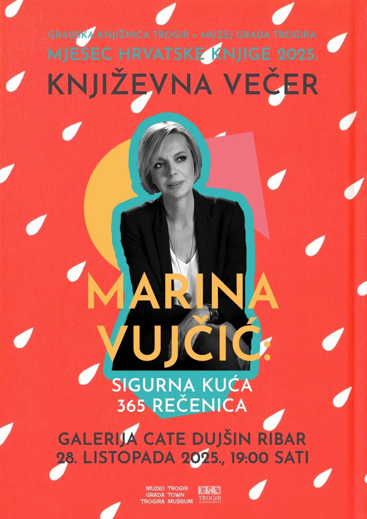 U sklopu Mjeseca hrvatske knjige Gradska knjižnica Trogir i Muzej grada Trogira organiziraju Književnu večer s Marinom Vujčić. Događaj će se održati u Galeriji Cate Dujšin Ribar u utorak, 28. listopada 2025. godine, s početkom u 19 sati.