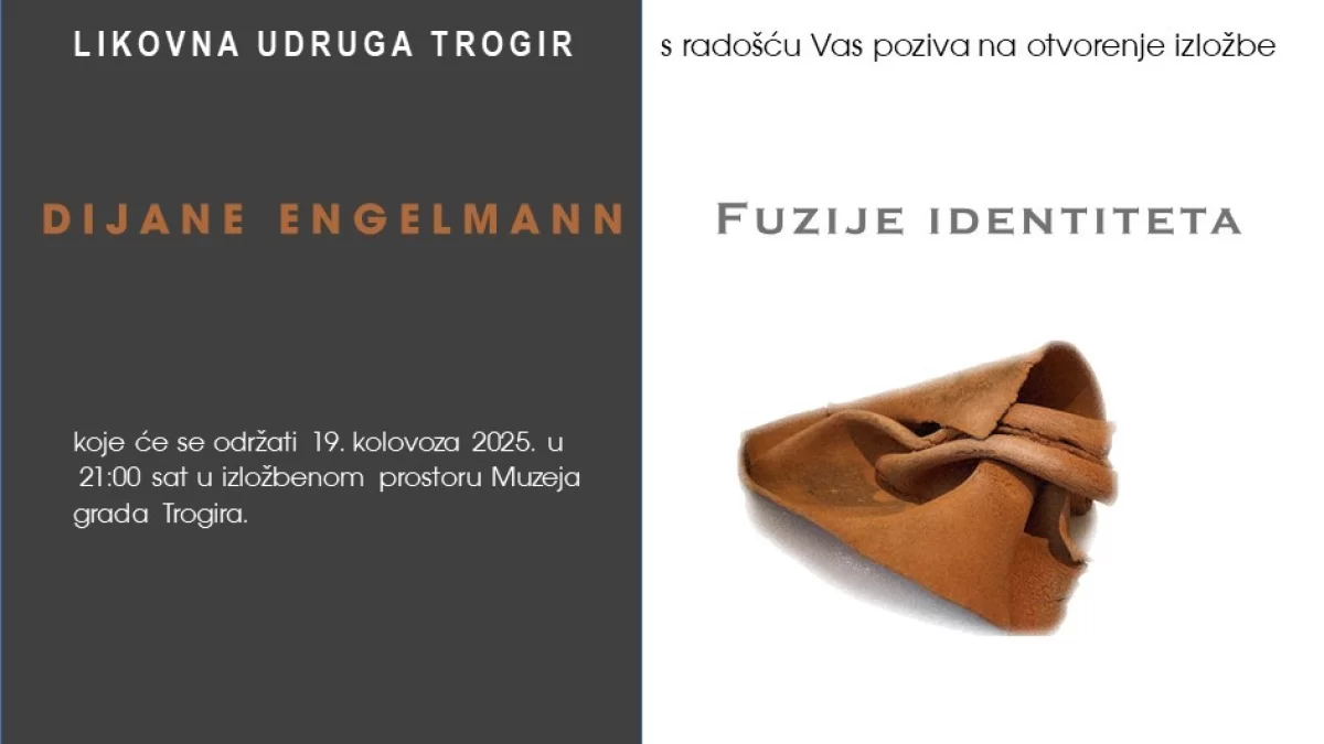 Izložba suvremene keramike i grafika “Fuzije identiteta” umjetnice Dijane Engelmann otvara se u utorak, 19. kolovoza 2025. u 21:00 sat u izložbenom prostoru Muzeja grada Trogira, piše Muzej Grada Trogira.